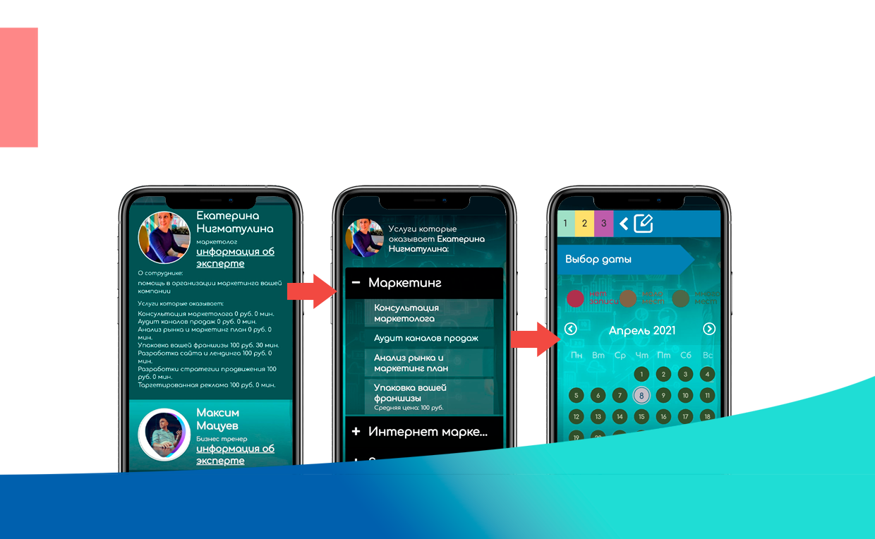 эксперты - раздел в котором участники могут записаться по ФИО к конкретному эксперту на консультацию